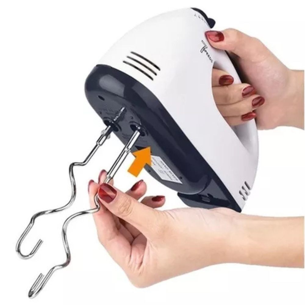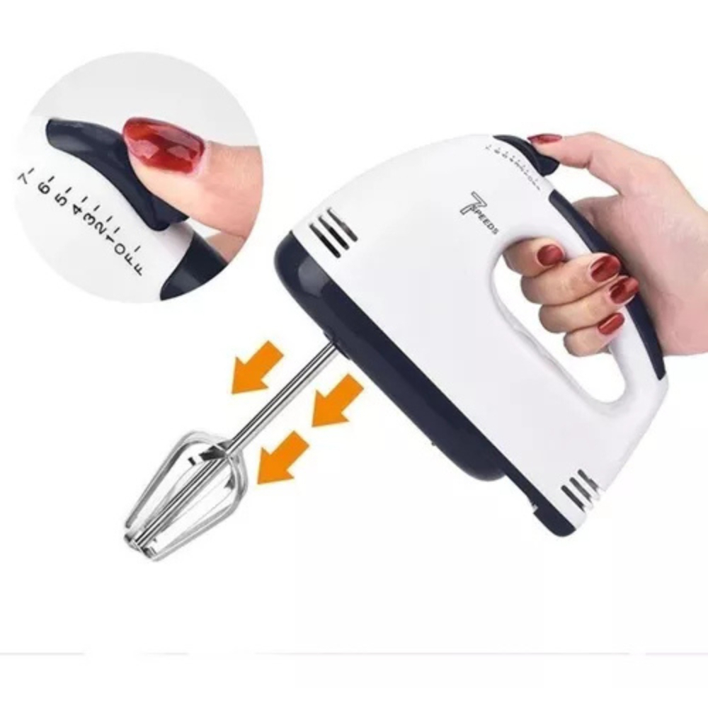 BATIDORA ELÉCTRICA DE MANO CON GANCHOS PARA BATIR Y AMASARCaracterísticas:- Incluye varillas de acero inoxidable para una mayor durabilidad.- Varillas intercambiables: batidores y amasadores.- Potencia de 180W para un rendimiento eficiente.- 7 velocidades para adaptarse a tus necesidades.- Fabricado en plástico resistente y duradero.