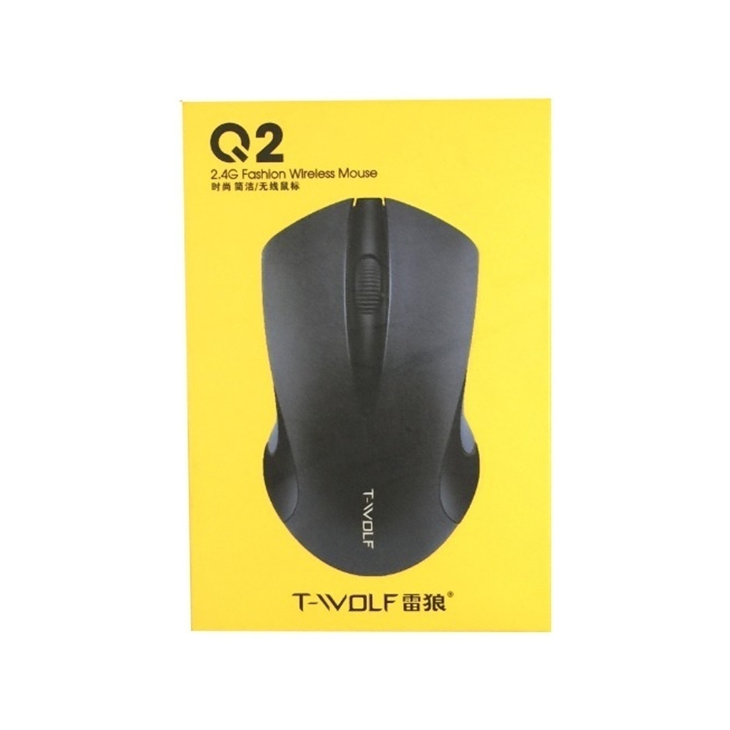 MOUSE INALAMBRICO T-WOLF Q2PRINCIPALES CARACTERÍSTICASMARCA: T-WOLFMODELO: Q2NÚMERO DE BOTÓN: 3MODO DE CONEXIÓN: 2.4G INALÁMBRICODISTANCIA DE TRANSMISIÓN INALÁMBRICA: 10 MRATÓN DPI: 1200DPIBATERÍA: 1 * BATERÍA AA (NO INCLUIDA)